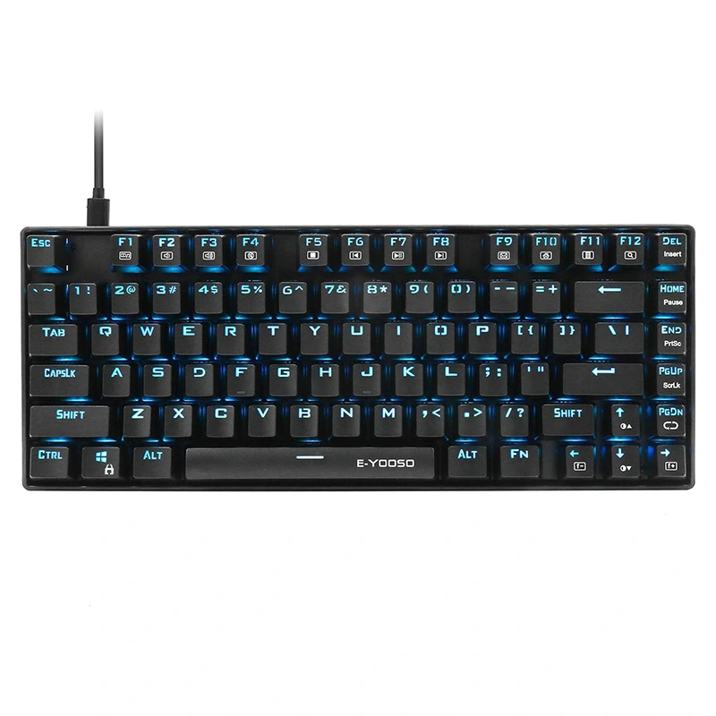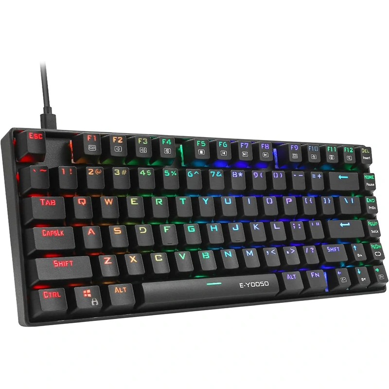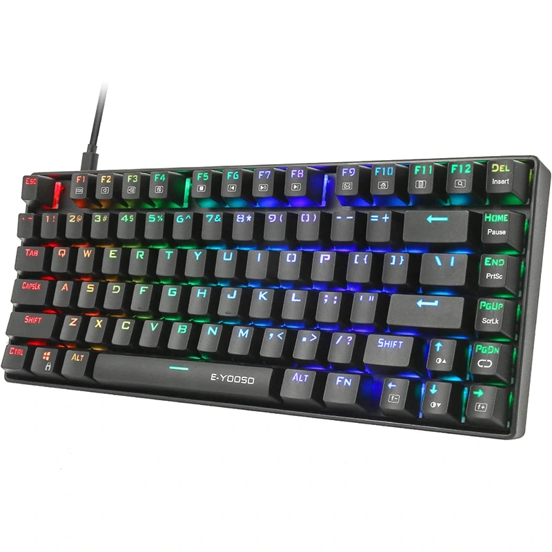 E-Yooso Z-88 PRO 60% компактная 81-клавишная игровая клавиатура с механическим синим переключателем RGB, светодиодной подсветкой, водонепроницаемостью и защитой от ореолов для характеристик