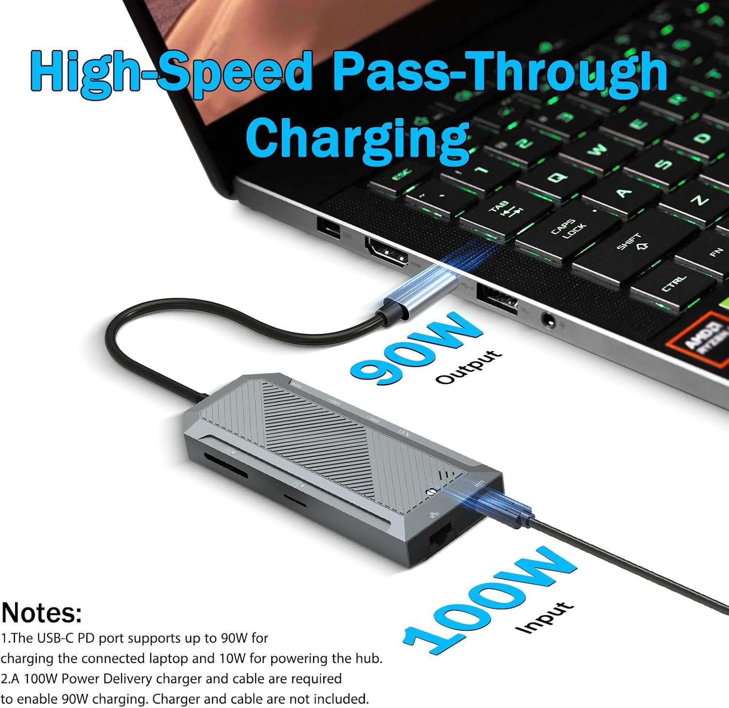 Поддержка подачи питания: сквозная зарядка до 100 Вт.