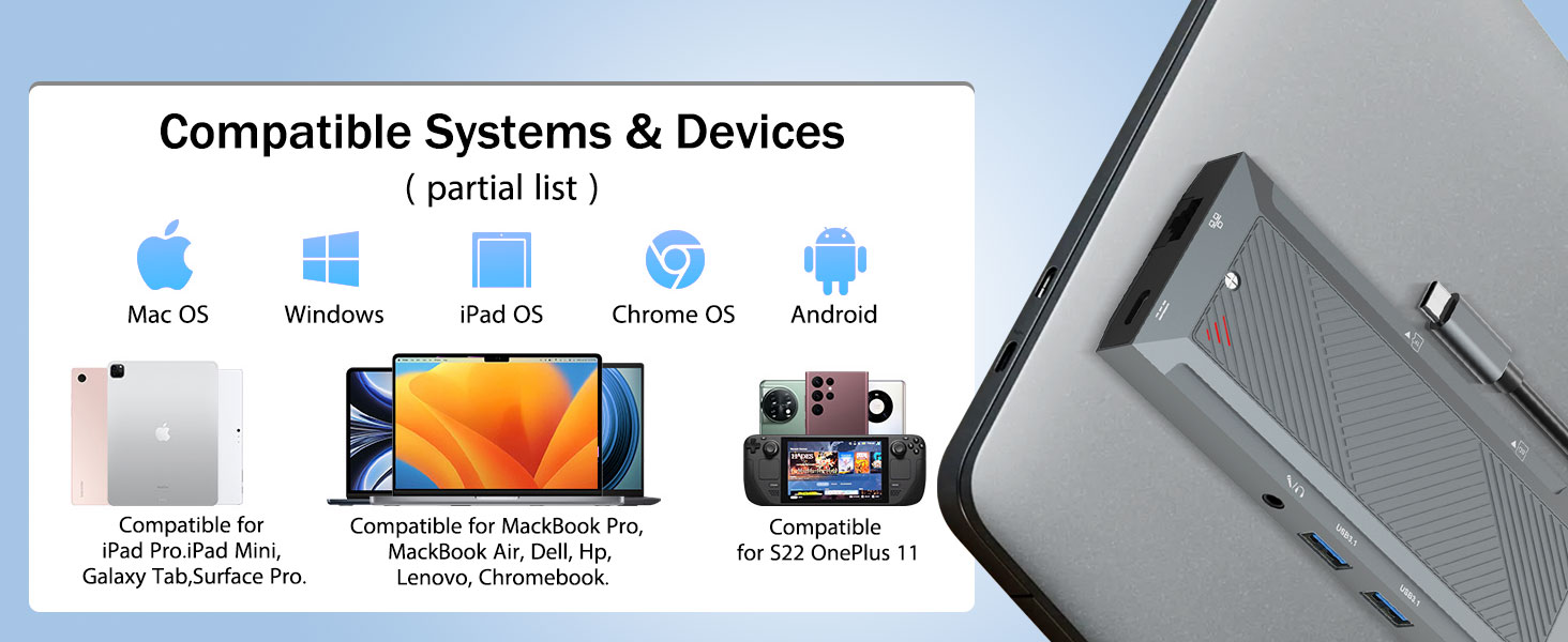 Независимо от того, используется ли этот концентратор для профессиональной работы, творческого творчества, деловых поездок или домашнего офиса, он предлагает практичный и эффективный способ максимизировать производительность современных устройств.