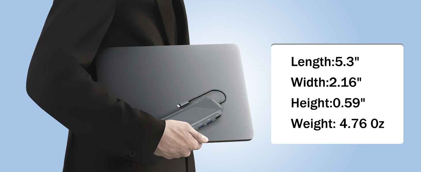 Несмотря на свою мощную функциональность, концентратор USB-C 9-в-1 с корпусом SSD для разветвителя HDMI M.2 NVMe 4K 60 Гц остается компактным и легким. Это позволяет легко носить его в сумках для ноутбуков, рюкзаках или дорожных кейсах.