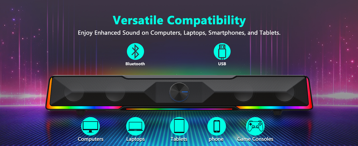 Совместимые устройства Черный GS516 с проводным подключением через Bluetooth/USB, ручка громкости звуковой панели, компьютерный динамик, предназначен для работы с широким спектром устройств. Совместимые устройства обычно включают в себя: