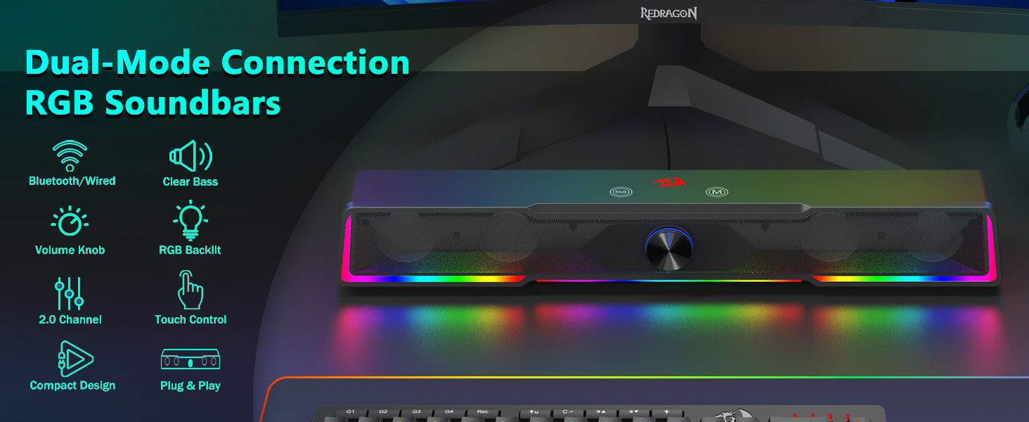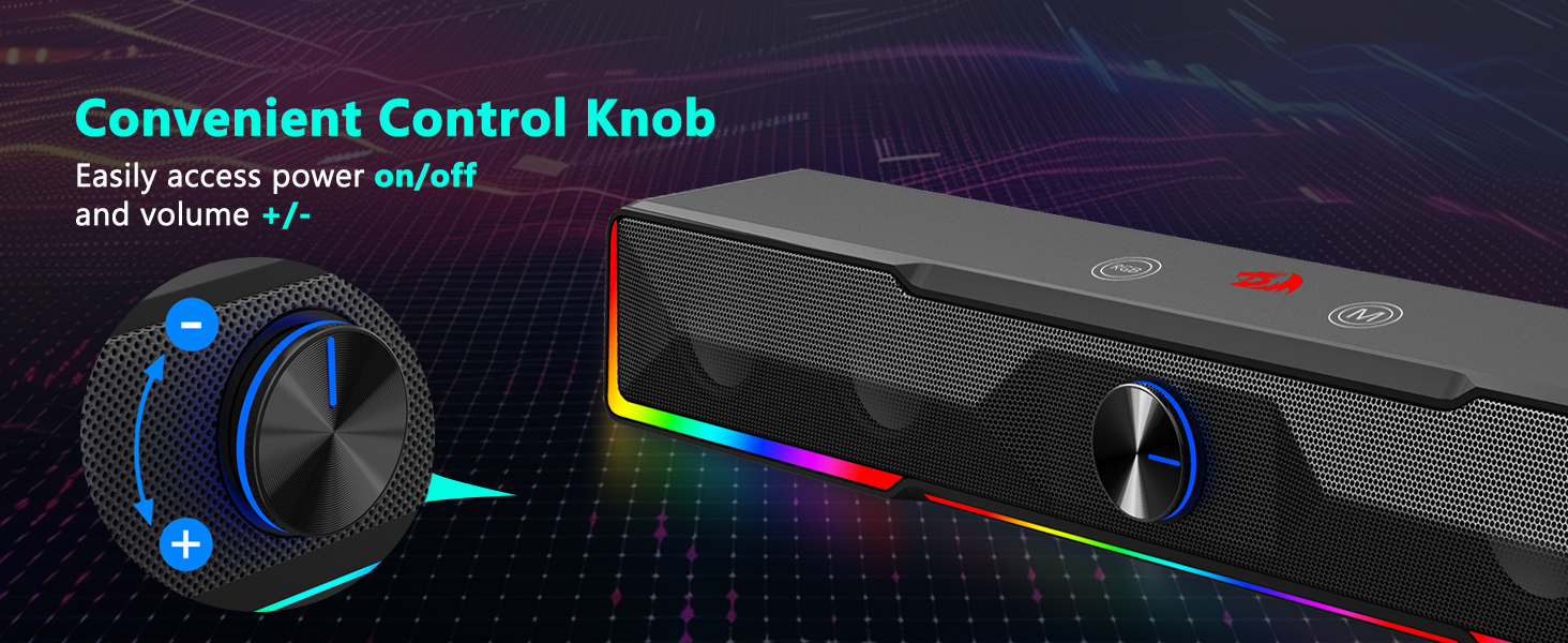 Плавная регулировка громкости Встроенная ручка громкости — одна из самых удобных функций черной ручки громкости звуковой панели GS516 с проводным подключением через Bluetooth/USB. Вместо того, чтобы регулировать уровень звука через системные настройки, пользователи могут просто повернуть ручку, чтобы мгновенно увеличить или уменьшить громкость. Это тактильное управление повышает удобство использования во время игровых сессий, воспроизведения музыки и видеоконференций.