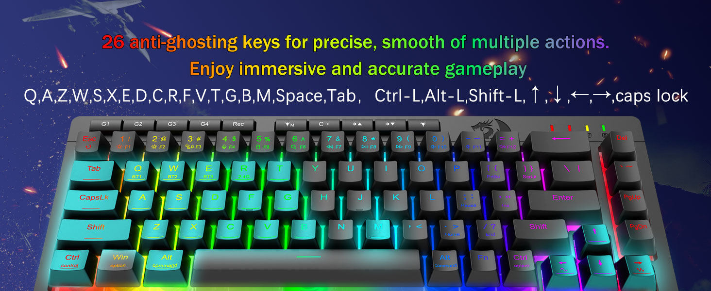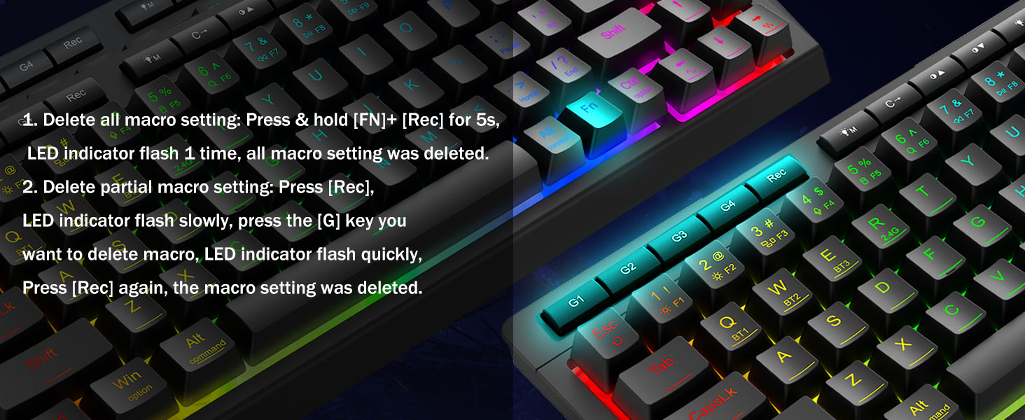 Настраиваемые макросы, простое управление —Программируйте 4 встроенные макроклавиши (G1–G4) мгновенно — никакого программного обеспечения не требуется. Записывайте сложные комбинации для игр, сочетания клавиш для повышения производительности или мультимедийные команды. Измените свой рабочий процесс за считанные секунды. Вы также можете использовать программное обеспечение для настройки функций, создания макросов, настройки RGB-подсветки и установки ярлыков. Ссылка на программное обеспечение: bit.ly/K524RGB-PRODriver