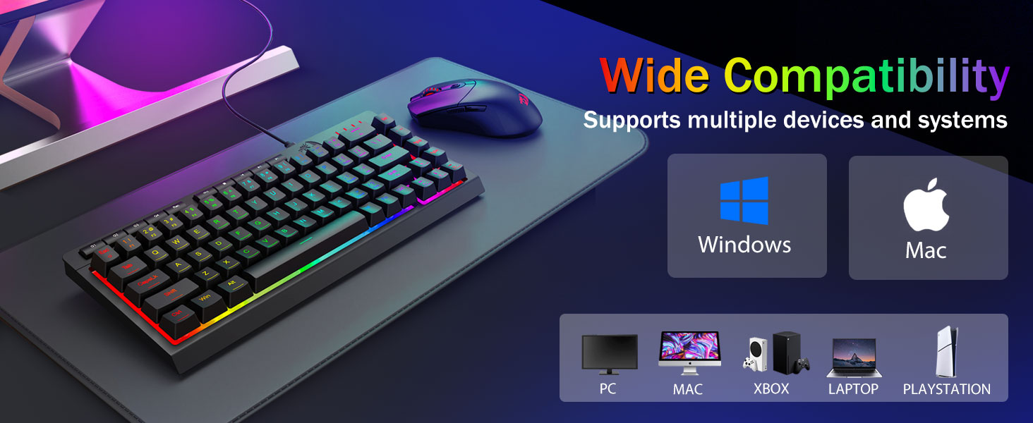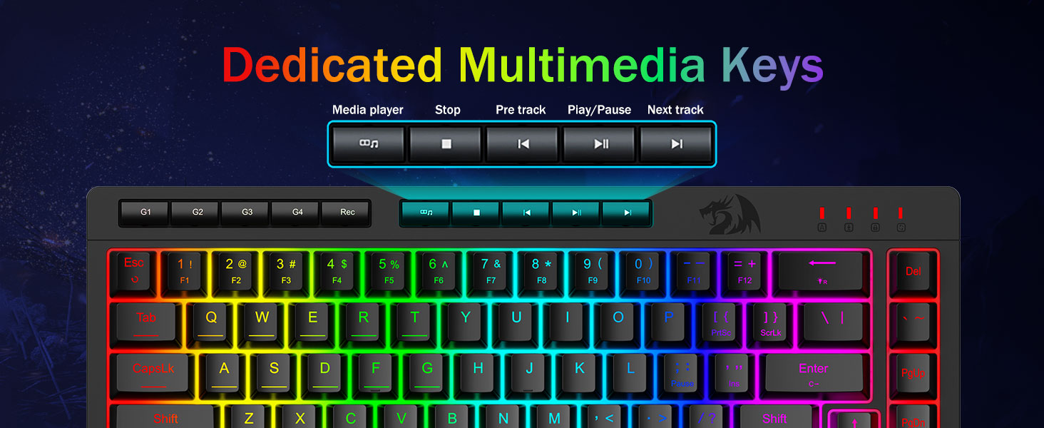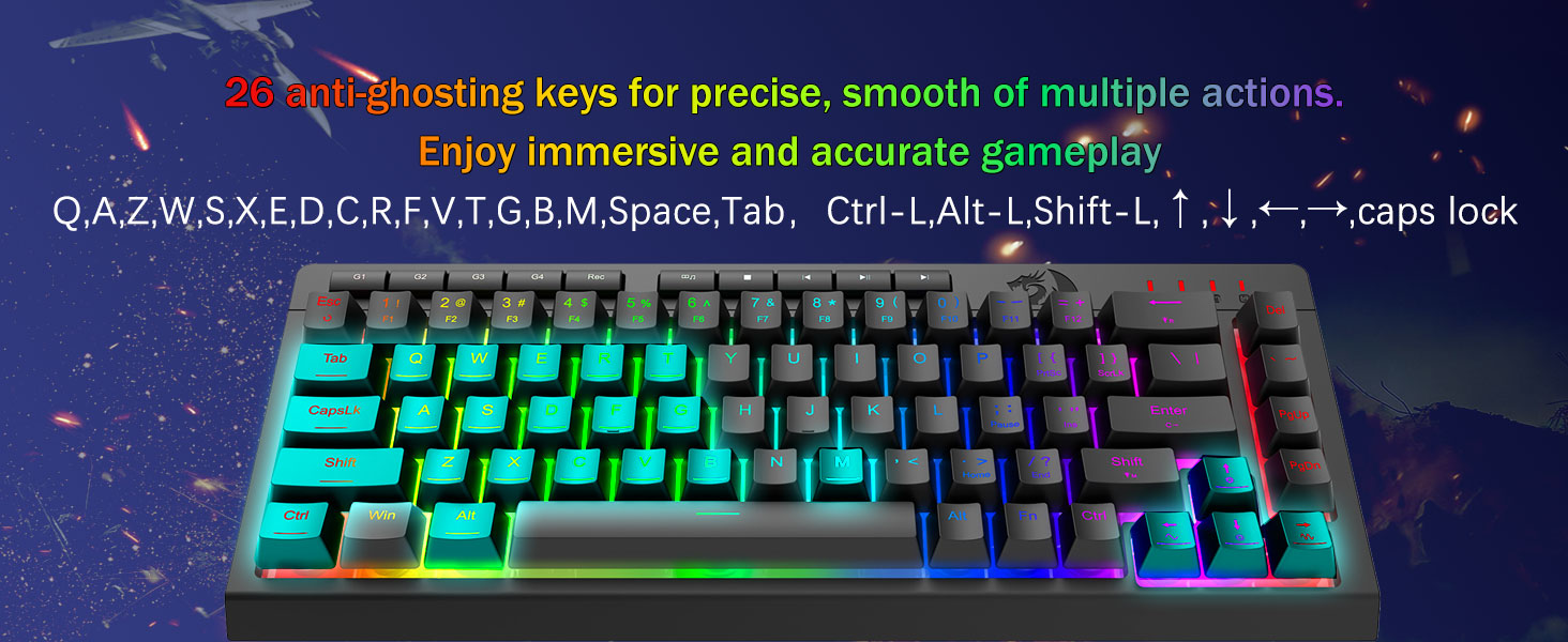 26 клавиш защиты от фантомов и специальные элементы управления мультимедиа- Благодаря клавишам с защитой от ореолов (клавиши с подчеркиванием), которые позволяют одновременно работать 26 клавишам для быстрого и точного ответа в игре так, как вы задумали. Специальные элементы управления мультимедиа позволяют воспроизводить, приостанавливать и пропускать мультимедиа прямо с клавиатуры, чтобы ваш игровой процесс был плавным и непрерывным.