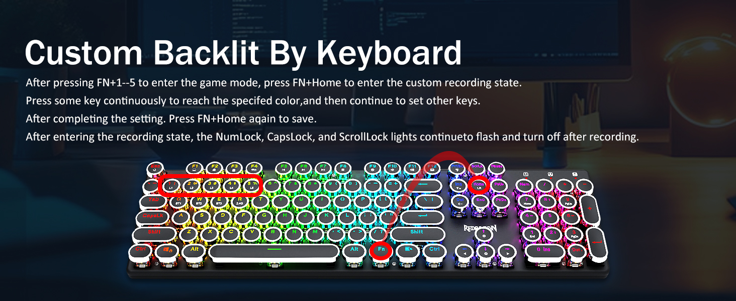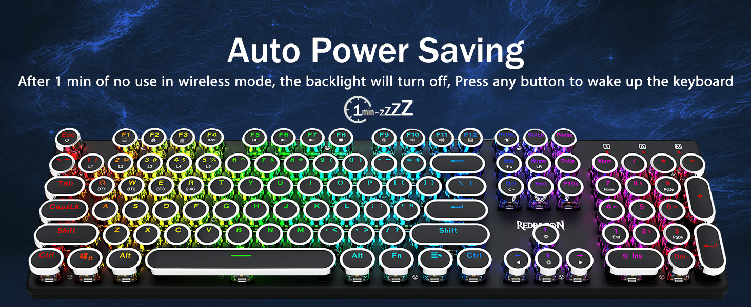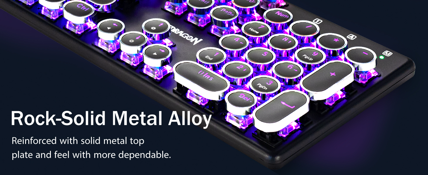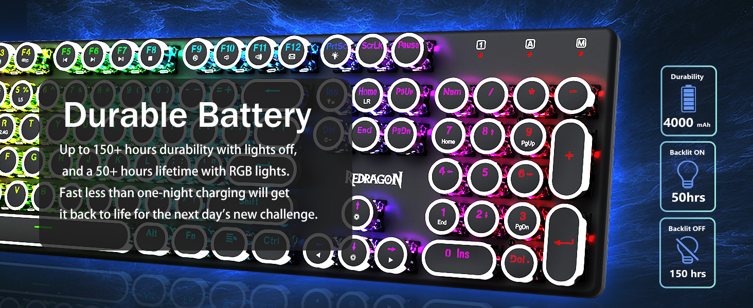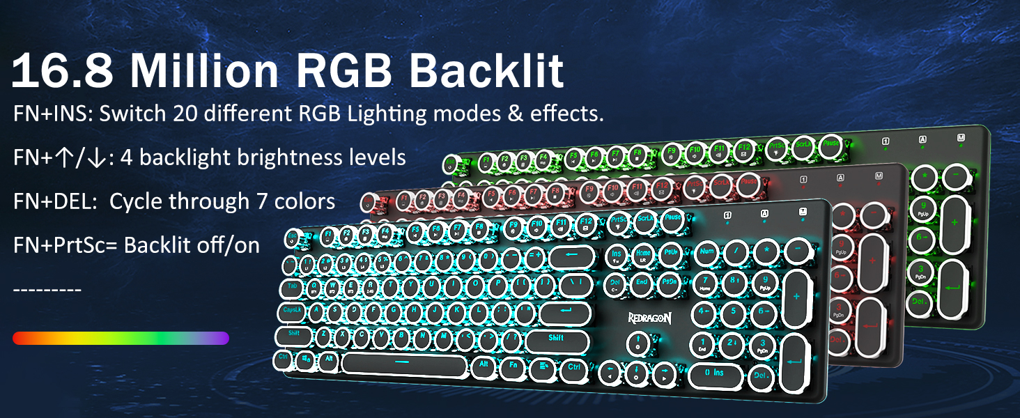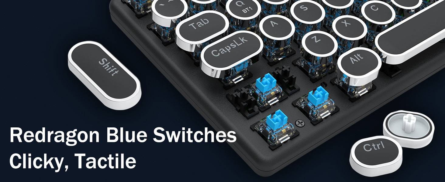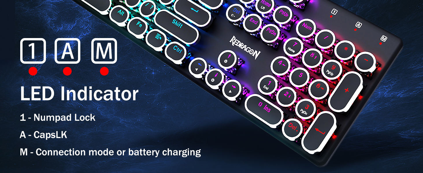 𝗥𝗲𝘁𝗿𝗼 𝗧𝘆𝗽𝗲𝘄𝗿𝗶𝘁𝗲𝗿 𝗦𝘁𝘆𝗹𝗲 𝘄𝗶𝘁𝗵 𝗠𝗲𝗰𝗵𝗮𝗻𝗶𝗰𝗮𝗹 𝗞𝗲𝘆𝘀 -Механические синие переключатели Redragon обеспечивают среднее сопротивление, слышимый щелчок и тактильную обратную связь, обеспечивают отзывчивую и точную игровую среду и производительность. Винтажные круглые колпачки клавиатуры в стиле стимпанк выглядят как классическая пишущая машинка, обеспечивают удобство набора текста и стабильное нажатие.