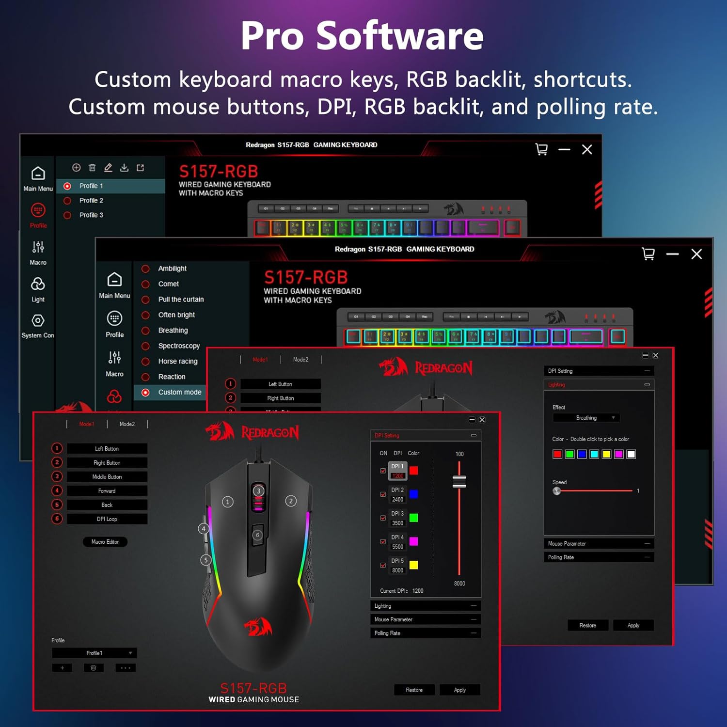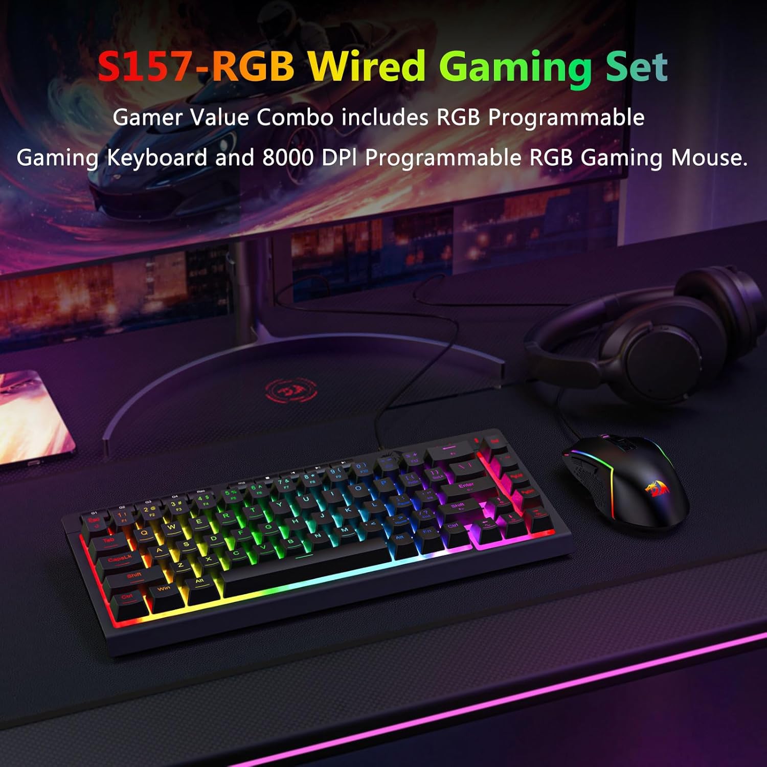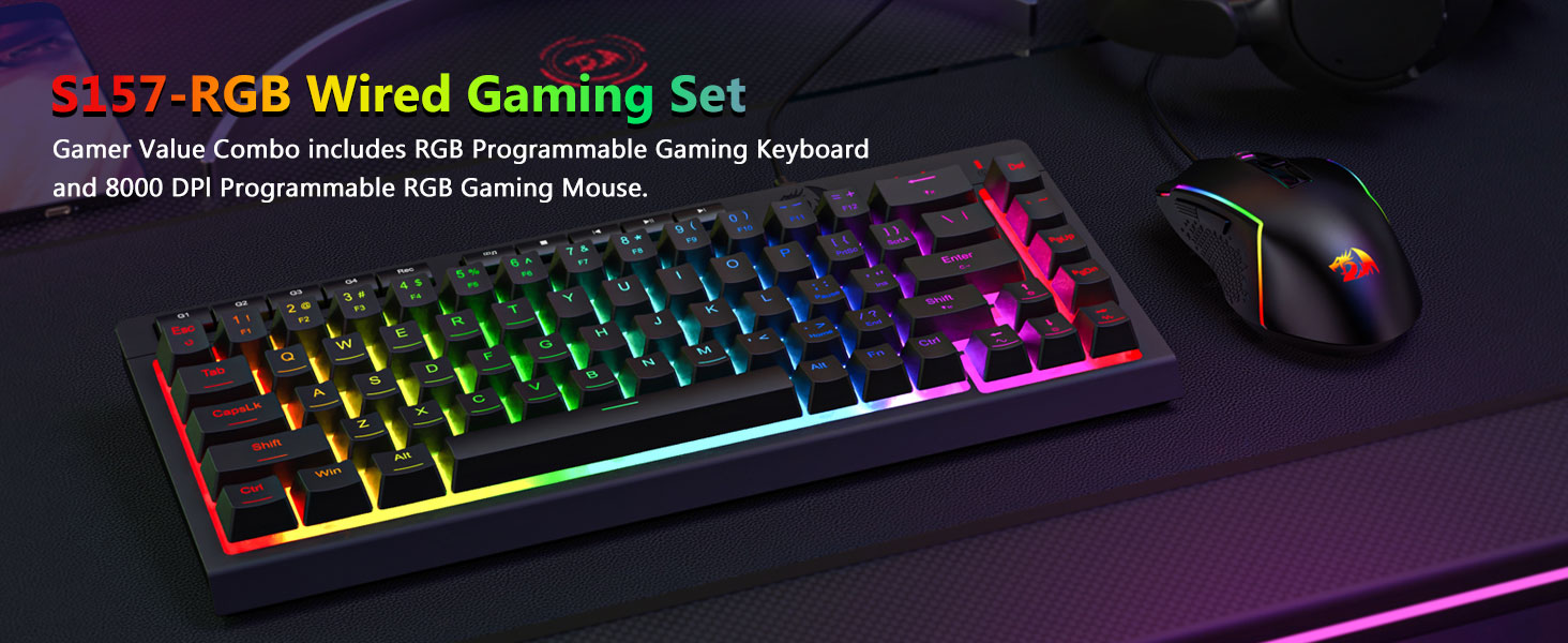 Надежная настройка клавиатуры и мыши необходима как для игровой производительности, так и для повседневной продуктивности. Комбинация проводной игровой клавиатуры и мыши Black S157 с RGB-подсветкой обеспечивает стабильный ввод данных, практичную функциональность и аккуратный внешний вид рабочего стола. Этот набор, сочетающий в себе полноразмерную клавиатуру и отзывчивую оптическую мышь, поддерживает широкий спектр приложений — от игровых сессий до офисных задач.
