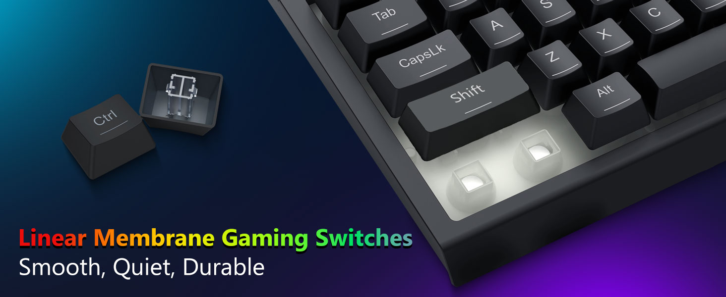 Клавиши спроектированы так, чтобы обеспечить последовательную обратную связь и сбалансированное нажатие. Это обеспечивает точный ввод текста и надежность ввода во время игр или офисного использования.