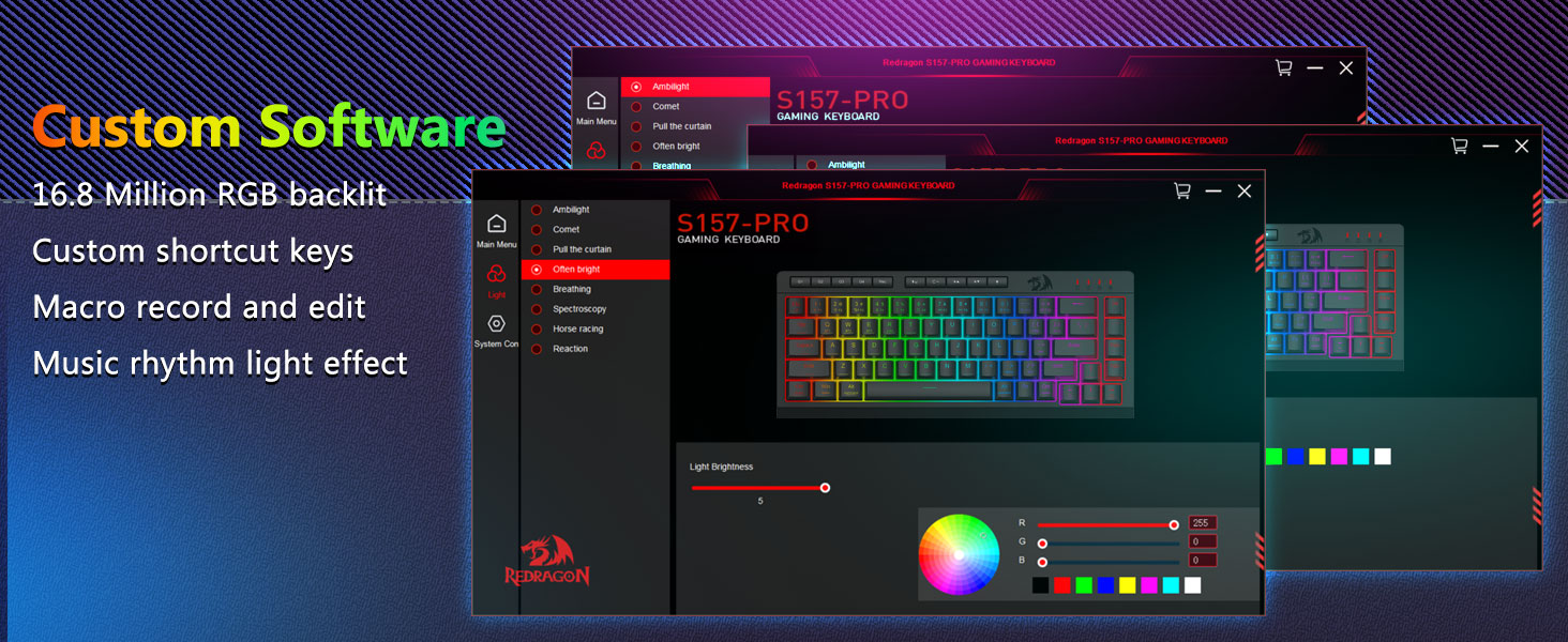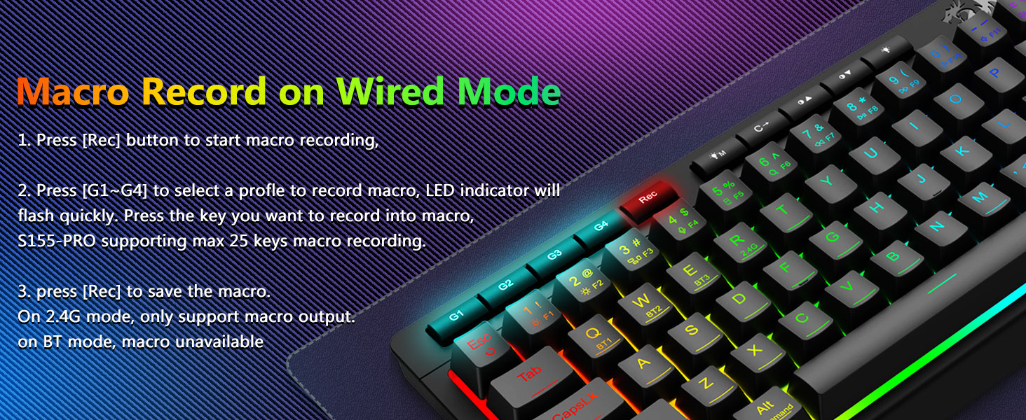 Настраиваемые макросы, специальные элементы управления с подсветкой- Программируйте 4 встроенные макроклавиши (G1-G4) мгновенно — никакого программного обеспечения не требуется. Записывайте сложные комбинации для игр, сочетания клавиш для повышения производительности или мультимедийные команды. Измените свой рабочий процесс за считанные секунды. Вы также можете использовать программное обеспечение для настройки функций, создания макросов, настройки RGB-подсветки и установки ярлыков. Благодаря клавишам с защитой от ореолов (клавиши с подчеркиванием), которые позволяют одновременно работать 26 клавишам для быстрого и точного реагирования в игре так, как вы задумали. Кнопки быстрого доступа к параметрам «Яркость», «Режим освещения» и «Игровой режим» позволяют быстро регулировать яркость, профили освещения и включать игровой режим одним нажатием кнопки.