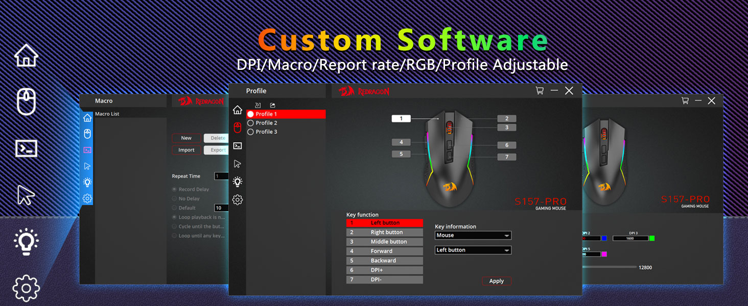 Макс. 12800 точек на дюйм, регулируемое- Оснащен 5 встроенными уровнями разрешения, которые позволяют регистрировать движения мыши в каждом точном месте. 5 уровней DPI можно создавать самостоятельно с помощью программного обеспечения, что позволяет геймерам быстро переключаться в игре.