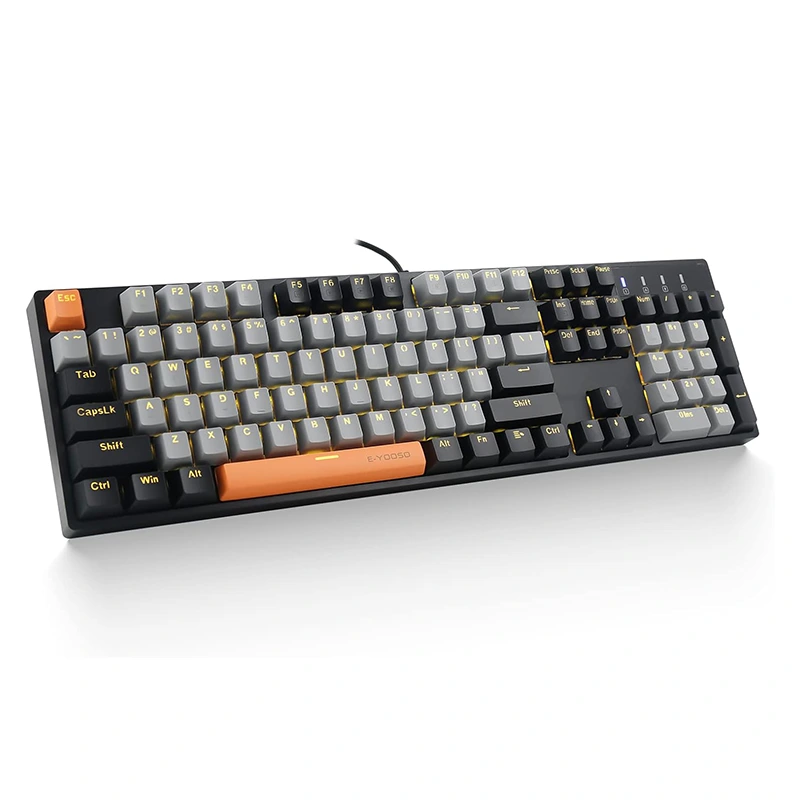 E-YOOSO Z-14 104-клавишная полноразмерная механическая игровая клавиатура с желтой подсветкой и красным переключателем. Хорошая текстура, доступная цена, можно играть в игры и работать вместе.