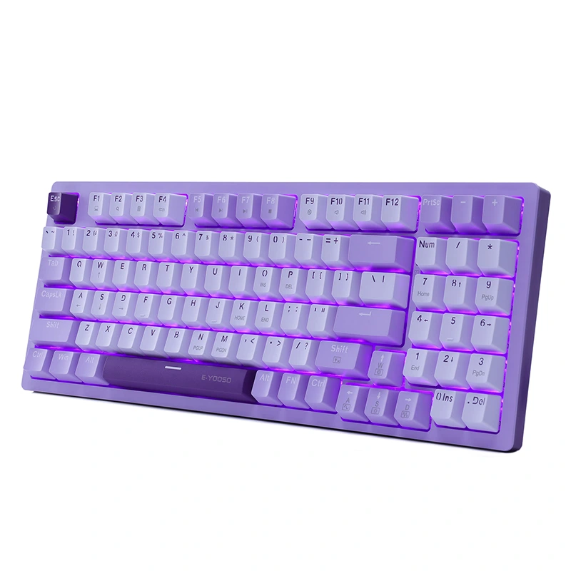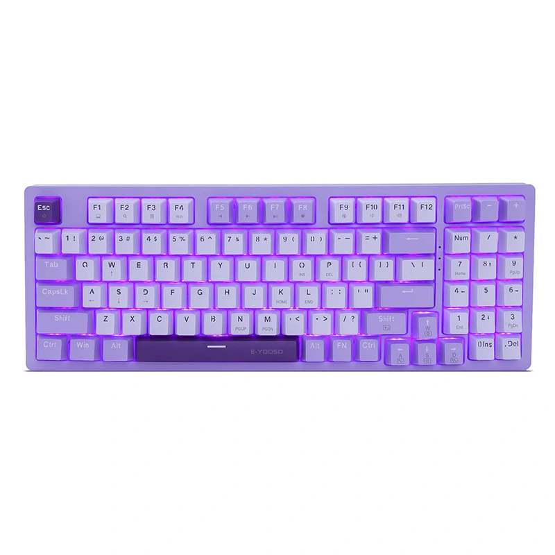 ❤ Фиолетовая светодиодная подсветка ▶ Предустановленные 10 режимов освещения, 5 уровней яркости подсветки, скорость дыхания. Прецизионные двойные колпачки клавиш никогда не выцветают. Свет может быть выключен.