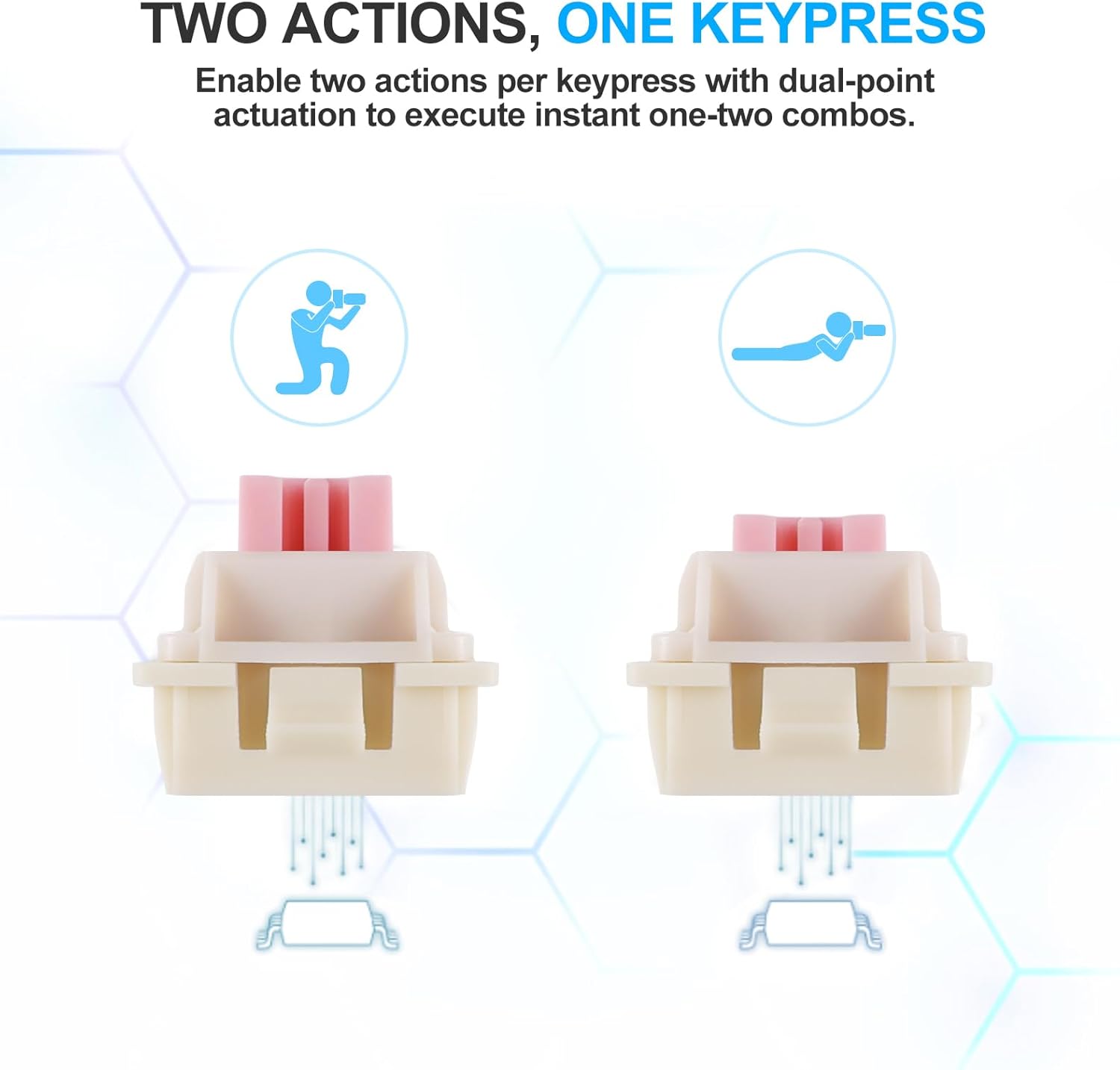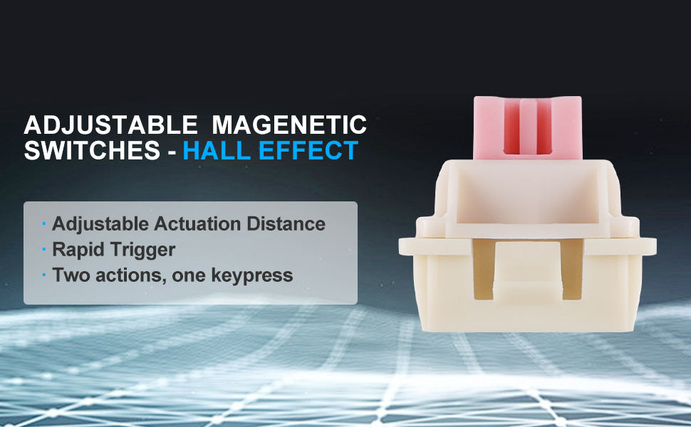 Магнитные переключатели используют датчики на эффекте Холла для обнаружения движения клавиш, обеспечивая регулируемые точки срабатывания и последовательное распознавание ввода. В отличие от традиционных механических переключателей, эта технология снижает физический износ и обеспечивает долговременную стабильность.