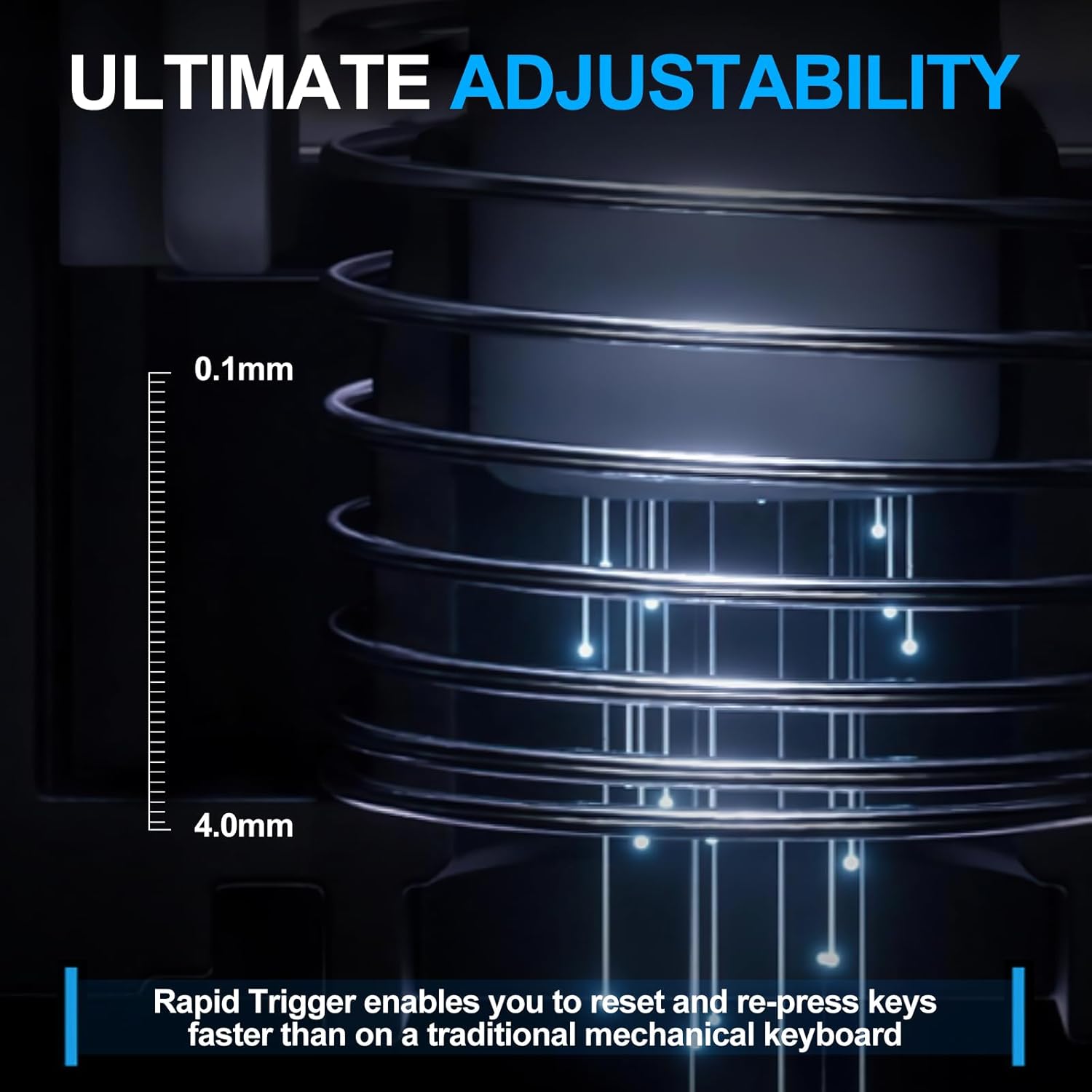 Бело-сине-черная механическая игровая клавиатура K701 Rapid Trigger 60% с проводным магнитным переключателем обеспечивает быстрый ввод текста и адаптируется к различным предпочтениям пользователя. Регулируемые точки срабатывания позволяют пользователям точно настраивать чувствительность в соответствии со своими потребностями.