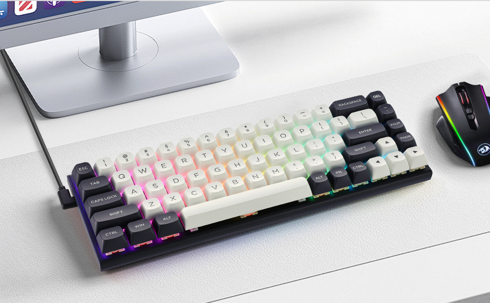 Эта клавиатура обеспечивает быстрое нажатие, стабильное нажатие клавиш и лаконичный дизайн, подходящий как для игровых, так и для профессиональных настроек. Его 60%-ная раскладка позволяет удалить ненужные клавиши, сохраняя при этом основную функциональность, что позволяет пользователям максимально увеличить пространство на рабочем столе и обеспечить эффективный контроль во время игры.