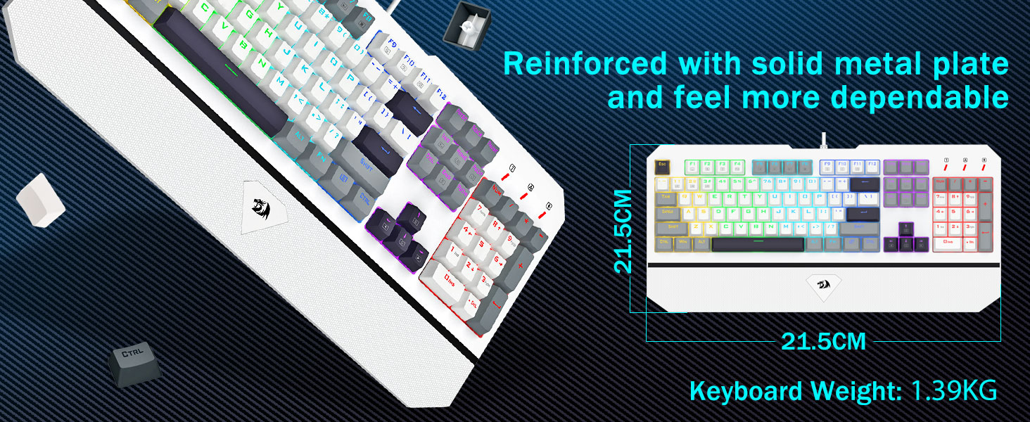 【Высококачественная 104-клавишная полноразмерная клавиатура】Панель клавиатуры, изготовленная из высококачественного металлического сплава и материала ABS, чрезвычайно прочна и устойчива к царапинам. Позолоченный разъем USB обеспечивает стабильное и надежное соединение для максимальной производительности в играх. Эта клавиатура весом 1,39 кг ощущается в ваших руках как прочный танк, обеспечивая непревзойденную устойчивость во время использования.