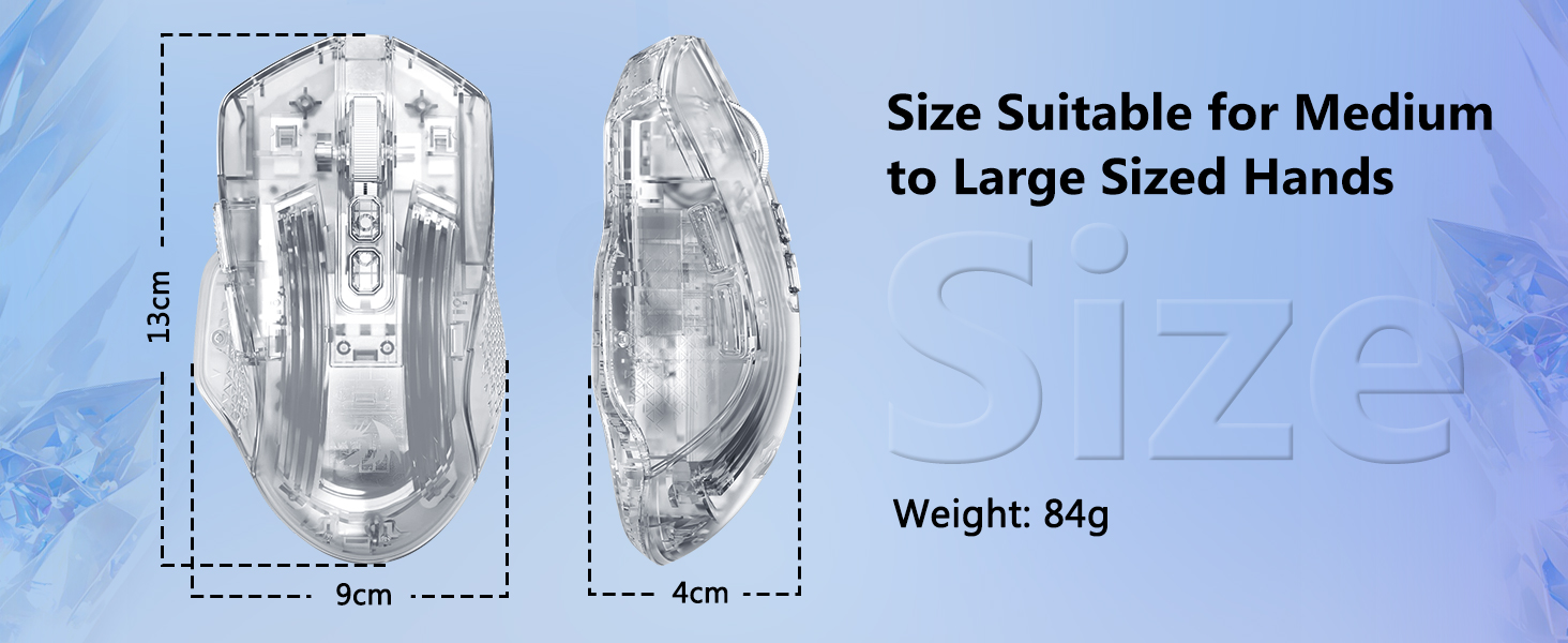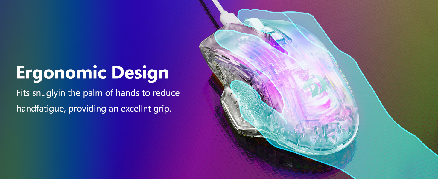 Мышь имеет такую форму, которая естественным образом лежит в руке и позволяет использовать ее в течение длительного времени без чрезмерного напряжения. Его структура позволяет использовать удобные стили захвата, включая захват ладонью, когтями и кончиками пальцев.