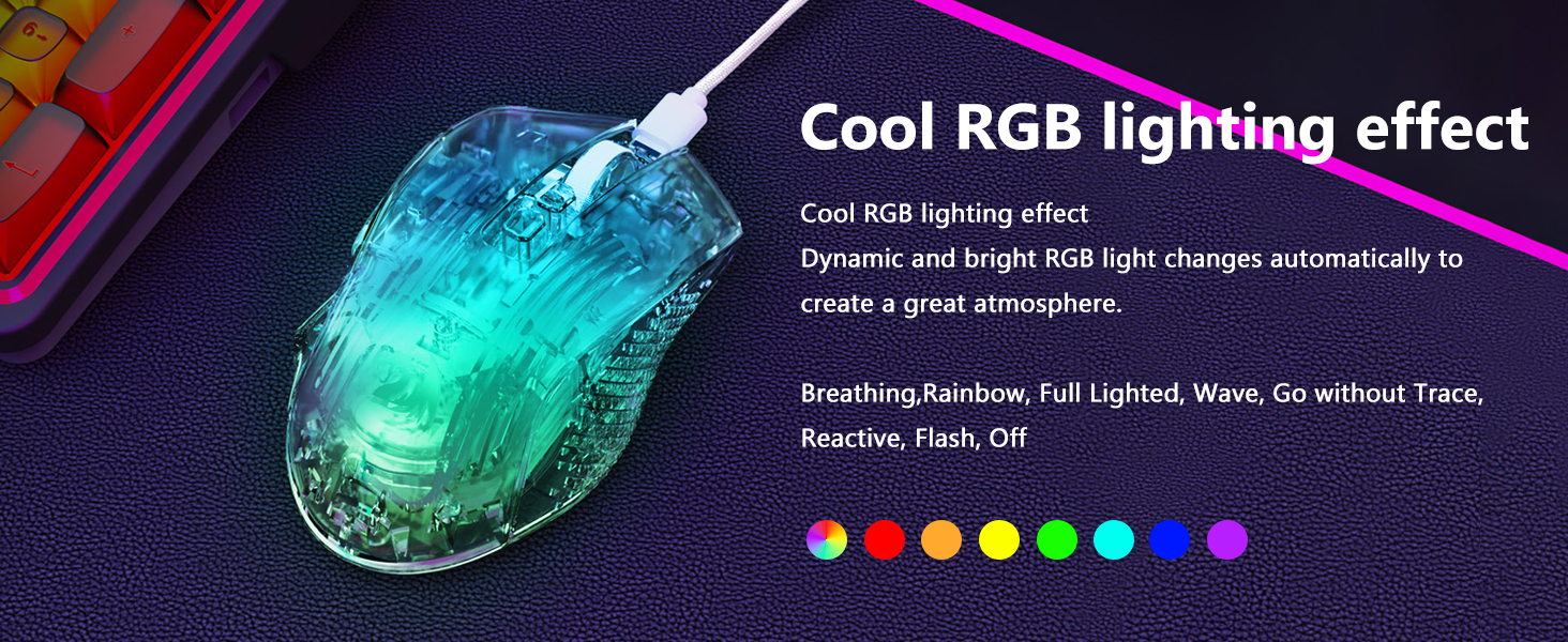 Мышь имеет восемь световых эффектов RGB, которые улучшают внешний вид, не влияя на производительность. Пользователи могут переключаться между режимами освещения в соответствии со своими настройками или личными предпочтениями.