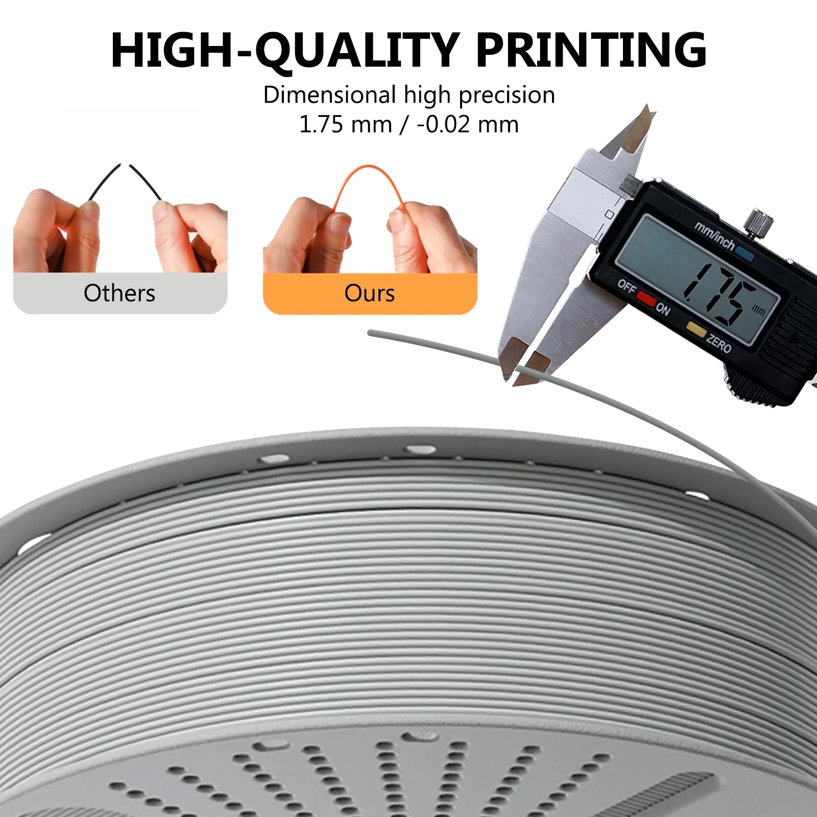 Контроль качества производства Белая PLA-нить для 3D-принтеров премиум-класса PLA-нить диаметром 1,75 мм проходит строгий производственный контроль для обеспечения стабильных характеристик. Процесс прецизионной экструзии Передовая технология экструзии поддерживает постоянный диаметр и округлость нити, обеспечивая надежную подачу через экструдеры 3D-принтера. Контроль влажности Нить PLA чувствительна к поглощению влаги. Высококачественная нить запечатана в вакуумную упаковку с влагопоглотителем, чтобы предотвратить повреждение от влаги во время хранения и транспортировки. Точность намотки катушки Автоматизированные системы намотки обеспечивают аккуратное расположение нити на катушке, предотвращая спутывание и образование узлов во время печати. Тестирование качества Перед отправкой каждая партия проходит испытания на механическую прочность, стабильность течения расплава и точность размеров.