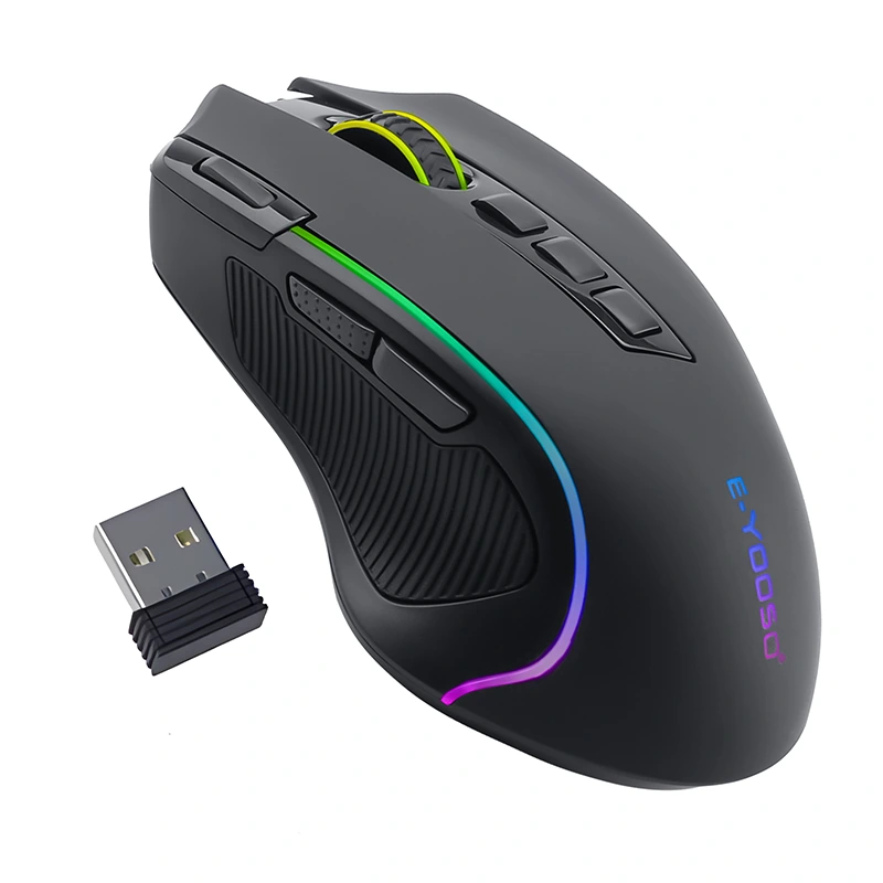 E-Yooso Wireless Gaming Mouse имеет 8000 оптического датчика DPI и ее с подсветкой RGB. Существуют программируемые кнопки беспроводных игровых кнопок Mouse RGB 9, с кнопками с боковой записи макроса, кнопкой быстрого огня, сделайте игру на один шаг быстрее
